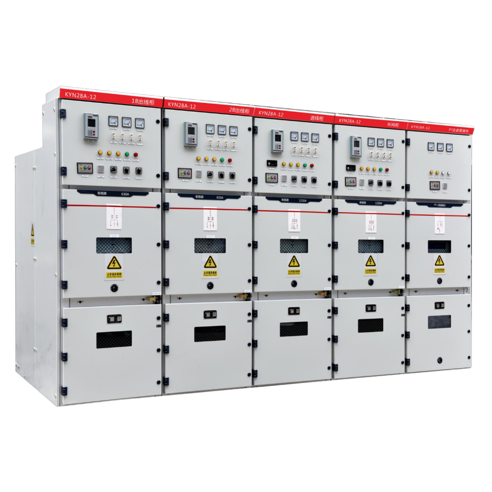 KYN28-12型户内交流金属铠装抽出式开关设备,作为发电厂送电、电力系统和工矿企业变电所受电、配电、实现控制、保护之目的,还可以用于频繁启动高压电动机等,满足“五防”联锁要求,开关柜既可配用ABB公司的VD4真空断路器,又可配用国产VS1真空断路器,实为一种性能优越的配电装置,具有方案组合灵活,结构紧凑、安全可靠、维修方便、抗冲击、耐腐蚀等优点。